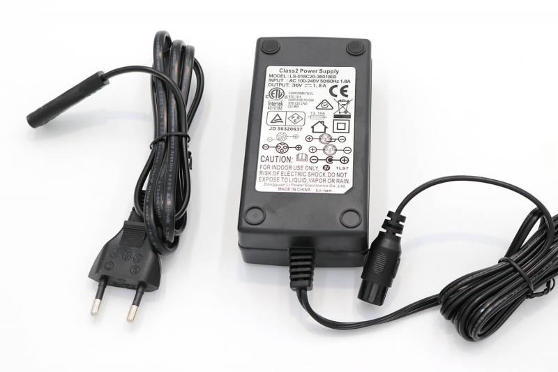 Chargeur dit « intelligent » : Cesse de charger quand les batteries sont pleines. Indication par LED de charge (rouge) et de fin de charge (vert)